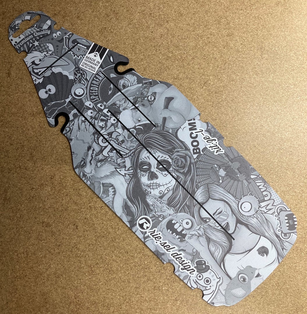 Větší varianta modelu Rit:ze - jednoduchý a funkční blatníček pod sedlo v cool designu Rie:sel. Upevnění na ližiny sedla bez pomocí stahovacích pásek. Odolný proti poškrábání. Nelze upevnit na sedla typu monorail.