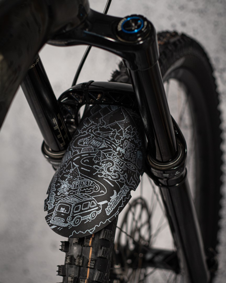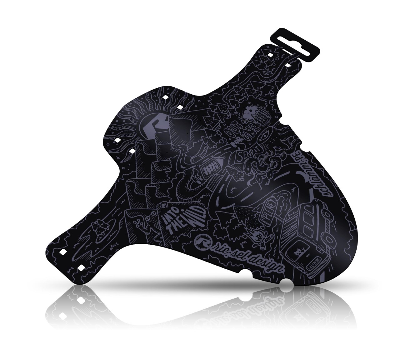 Jednoduchý a funkční blatníček na vidlici a zadní stavbu v cool designu Rie:sel. Upevnění pomocí stahovacích pásek, které jsou součástí balení. Odolný proti poškrábání.