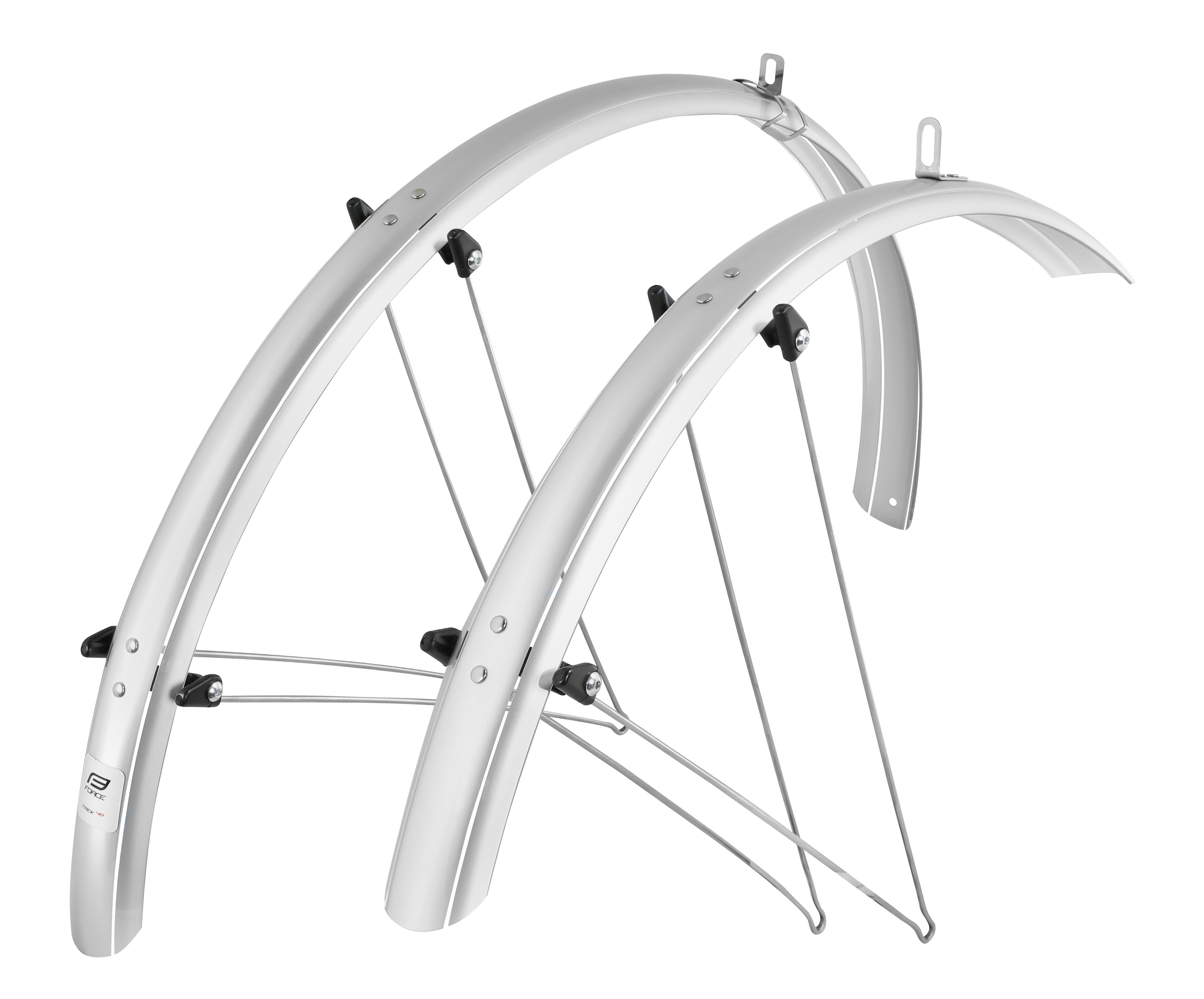 sada blatníků přední + zadní vhodné pro 28" trekkingová kola šířka blatníku: 48 mm materiál: PET ohebný materiál + dvojité kovové vzpěry hmotnost: 530 g baleno v sáčku vyrobeno v Německu