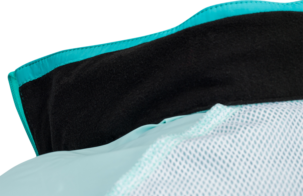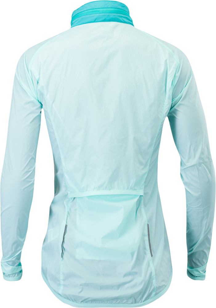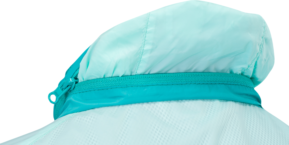 Dámská cyklistická bunda GELA je vyrobena z velmi lehkého a hustě tkaného materiálu (100% polyamide). Díky tomu je větruvzdorná a je tak lehká, že když ji máte na sobě, tak o ní téměř nevíte. Má dlouhý hlavní zip, který je na konci pod bradou překrytý ochrannou légou. Bundu můžete velmi snadno během několika vteřin sbalit do zadní kapsy. Sbalená bunda se vejde i do zadní kapsy na dresu a můžete ji tak mít u sebe při každé vyjížďce. Když je počasí opravdu nepříjemné, může vám posloužit kapuce, která je schovaná v límci. Stačí rozepnout zip a vyndat ji. Díky gumě v lemu kapuce vám perfektně přilne k hlavě. Límec je z vnitřní strany z počesaného materiálu.