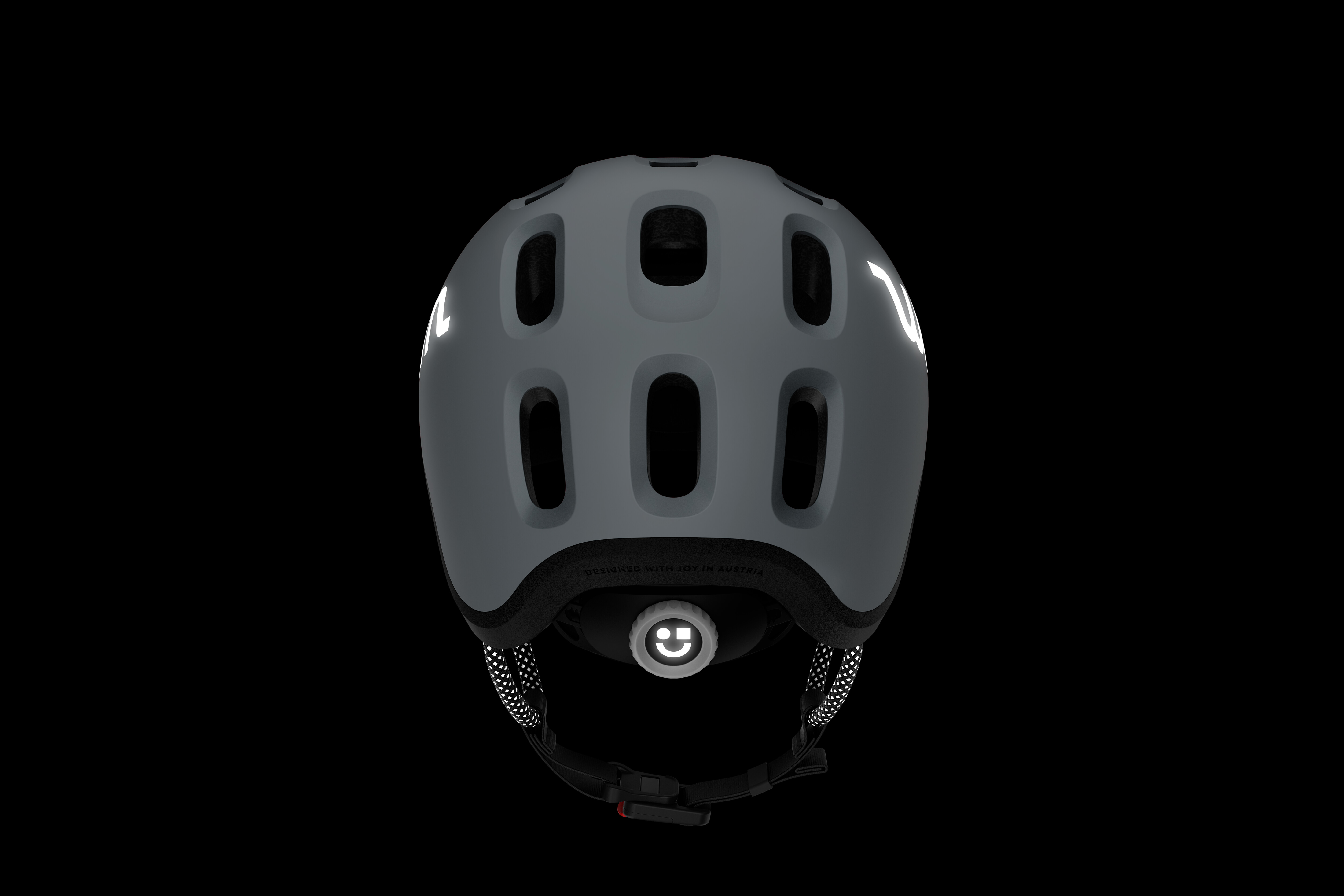 Logo na každé straně, oba popruhy a kolečko pro nastavení velikosti jsou z reflexního materiálu.
