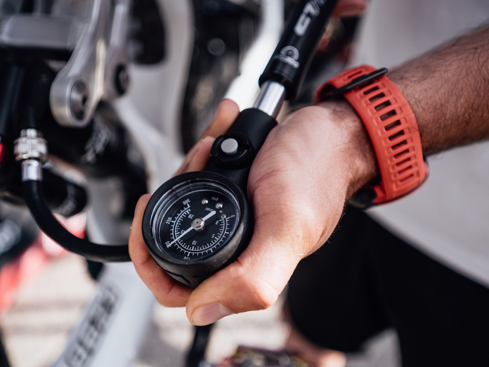 Duralová hustilka s manometrem (bar/psi)