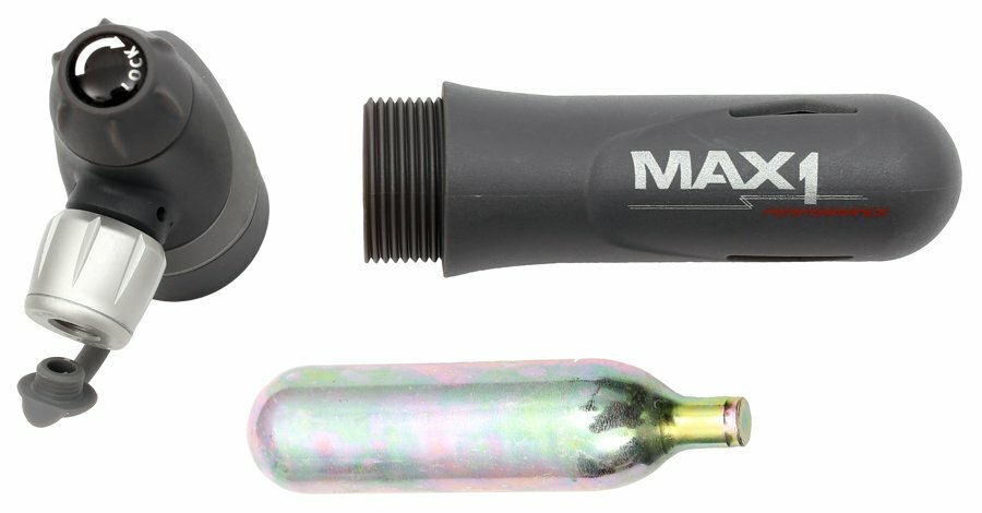 Kompaktní bombičková hustilka MAX1 Inflator s univerzální hlavou pro AV i FV ventil.