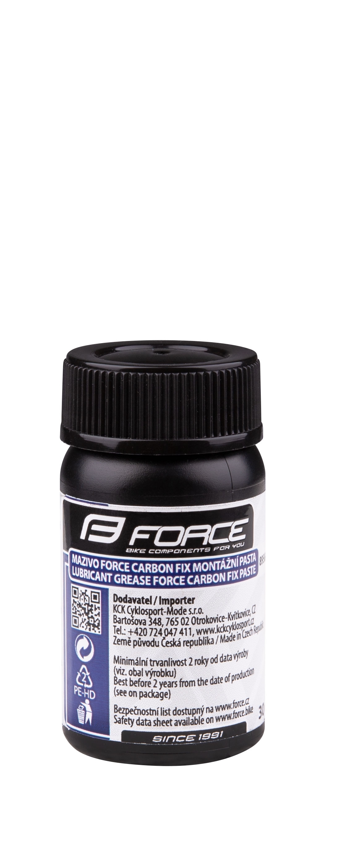 montážní pasta FORCE Carbon FIX je skvělý pomocník v praktické uzaviratelné dóze používá se k upevnění karbonových dílů ke komponentům z karbonu nebo ke komponentům z jiných materiálů (většinou hliníkovým) zabraňuje zasouvání sedlovek, posouvání řídítek a další vhodná je i pro ocelové, duralové nebo titanové díly a jejich kombinaci s karbonem prodej a balení ve 30 g dóze s vnitřním štětečkem pro snadné nanesení
