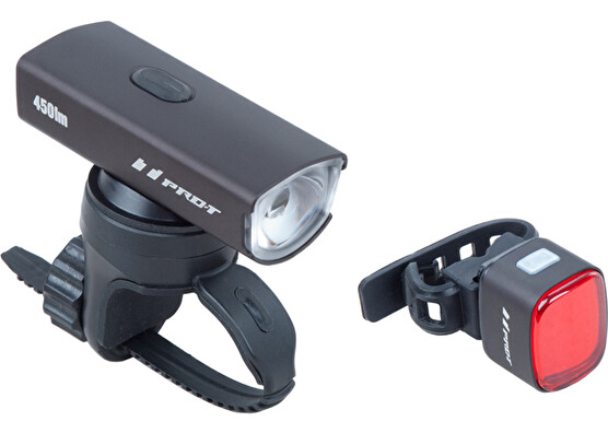 Přední světlo PRO-T Plus 450 USB 450 Lumen, 1 Led Luminus SST-20F, kapacita baterie: 1100mAh, doba provozu: 100% (450LM / 1h15 minut) -70% (315LM / 2h) -40% (180LM / 3h40 minut) -Eco (90LM / 7.5h) - Blesk (180LM / 7.5h), doba nabíjení: 2h, nouzový režim: když je baterie vybitá, světlo se automaticky přepne do nouzového režimu 30 lumenů a vydrží dalších 30 minut, indikátor napájení: Zelená (>70 %) - modrá (>30 %) - červená (>15 %) - červené blikání