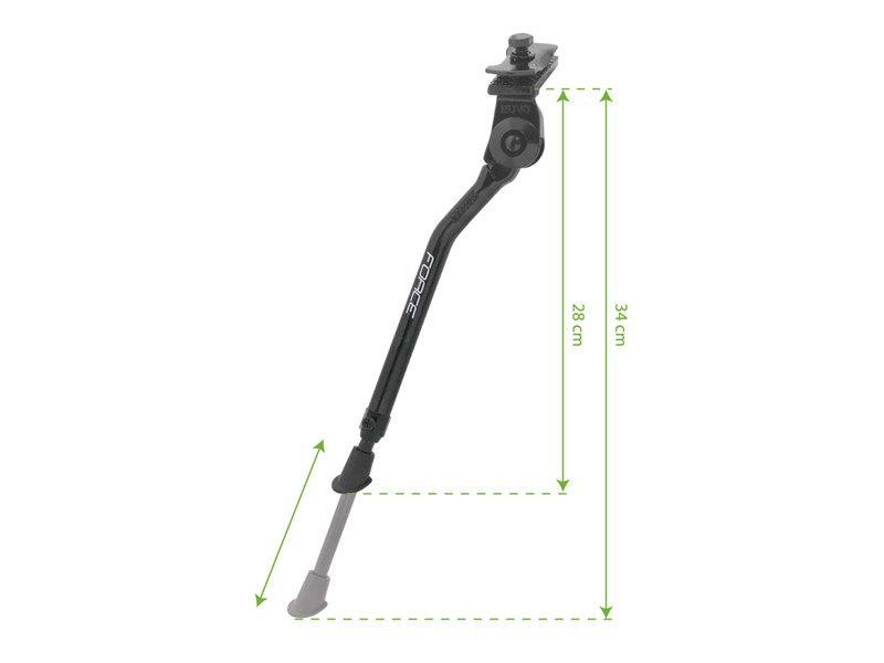 stojan pod rám FORCE s protikusem stavitelný: 20" - 28" kola maximální délka: 34 cm minimální délka: 28 cm s plastovou koncovkou materiál: Al hliník hmotnost: 255 g baleno v sáčku